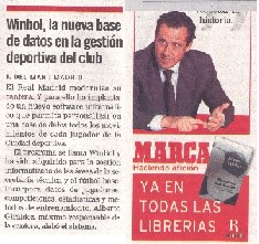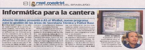 En las noticias se detalla como el Real Madrid adquiere WinBol tanto para informatizar sus equipo de fútbol base, la cantera, como para suministrar la base de datos WinBol profesional a la Secretaría Técnica.